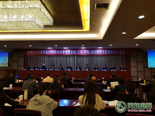 ? ? 2019年10月31-11月2日,安徽省古生物學(xué)會(huì)2019年學(xué)術(shù)年會(huì)暨安徽、江蘇、河南、湖北四省古生物學(xué)術(shù)交流會(huì)在天柱山召開。會(huì)議由安徽省古生物學(xué)會(huì)、江蘇省古生物學(xué)會(huì)、河南省古生物學(xué)會(huì)、湖北省古生物學(xué)會(huì)和中國古生物化石保護(hù)基金會(huì)科普專委會(huì)主辦,安徽省地質(zhì)博物館、天柱山地質(zhì)公園管委會(huì)和潛山市自然資源與規(guī)劃局承辦。來自江蘇、河南、湖北和安徽的高等院校、科研機(jī)構(gòu)、自然資源系統(tǒng)、地質(zhì)公園和地質(zhì)博物館等領(lǐng)域的會(huì)員代表、專家學(xué)者和有關(guān)方面負(fù)責(zé)人等共120多人出席會(huì)議。中國古生物學(xué)會(huì)、安徽省科學(xué)技術(shù)協(xié)會(huì)、安徽省自然資源廳和及潛山市政府對(duì)會(huì)議的召開高度重視,并給予了大力支持。潛山市市委常委、天柱山地質(zhì)公園管委會(huì)副主任涂高生到會(huì)致辭。