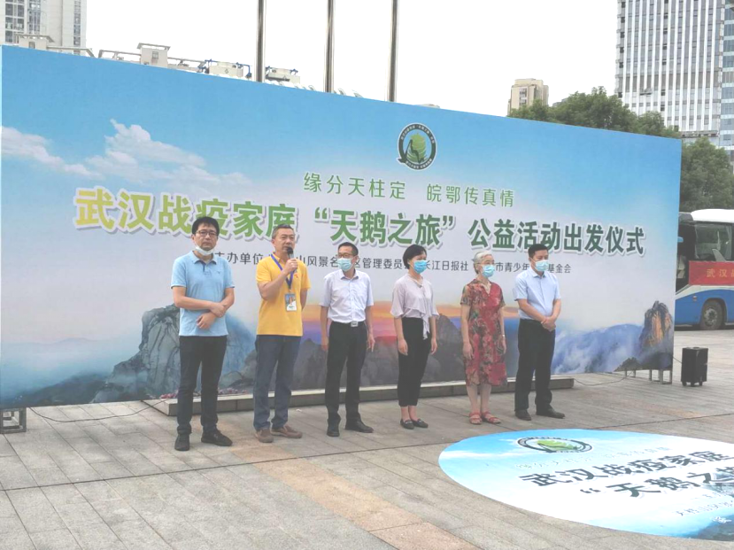 “天柱山關(guān)愛基金”相關(guān)負責人介紹,本次公益活動是天柱山關(guān)愛基金發(fā)起的活動之一,“天鵝之旅”中的“天”指天柱山,“鵝”是湖北簡稱“鄂”的諧音,天鵝象征美麗純潔、吉祥美好,天鵝之旅代表著天柱山景區(qū)和全國人民對武漢抗疫英雄們的關(guān)愛,也代表著湖北與安徽兩省人民之間的深情厚誼。