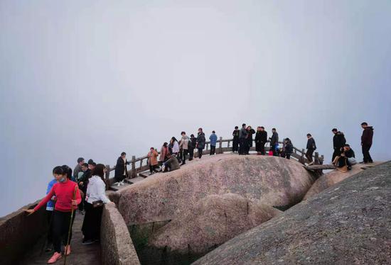 初春的天柱山秀中藏媚,景色宜人。天柱峰猶抱琵琶半遮面,時(shí)而被云霧籠罩,時(shí)而露出偉岸真容,景象萬千,美輪美奐。中午時(shí)分,更是驚現(xiàn)“佛光”奇觀,游客紛紛發(fā)出歡呼,共同祝福偉大的祖國牛氣沖天、繁榮富強(qiáng)。
