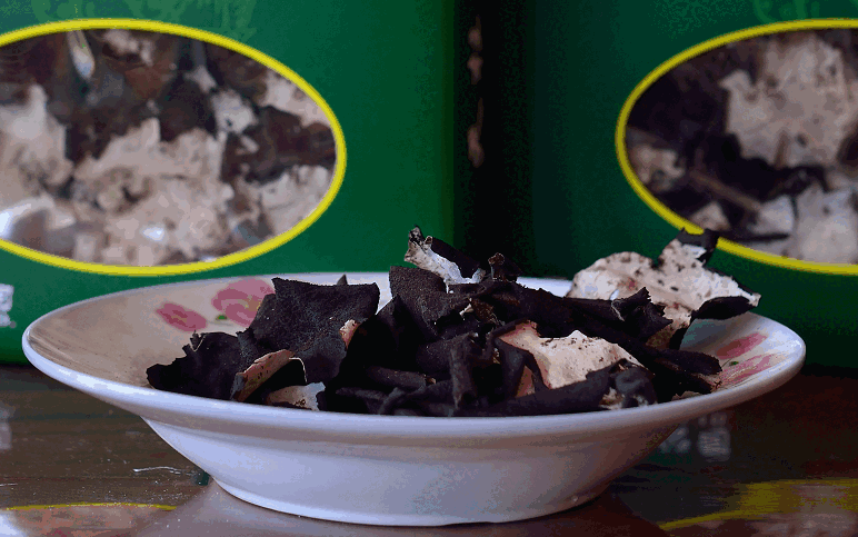 屬地衣門石耳科,菌體葉狀,正面為灰白或灰綠色,反面為黑褐色,多生長(zhǎng)于海拔700-2000米懸崖峭壁的陰濕石縫間。石耳常以小群落的形式分布,少則幾片,多則百余片。一公斤干石耳約1400片左右,因而極其珍貴。石耳的藥用價(jià)值很高,《神農(nóng)本草經(jīng)》就把它列為上等藥材。其主要成份有氨基酸、卵磷質(zhì)和多種微金屬元素。有滋陰潤(rùn)肺、治療高血壓和各種熱癥等攻效,對(duì)抑制腫瘤、出血也有積極作用。同時(shí)石耳亦可佐菜食用。“石耳燉甲魚(yú)”、“石耳烏雞湯”等乃為上等佳肴。天柱山地處江淮之間,氣候溫和、雨量充沛,終年云霧繚繞,且境內(nèi)群山環(huán)繞,海拔千米以上的雄峰45座,是石耳生長(zhǎng)的理想之地。