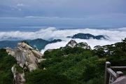 特色: 薄霧纏玉帶,云濤波流涌。昨日,在天柱山驚現(xiàn)絕美云海奇觀,萬余名游人目睹了如此勝景。當日,5時許,在近一個小時的期盼與等待中,一輪圓日,終于噴薄而出于東方,朝陽染紅了天際,金色照耀著大地,光輝萬丈,氣勢恢宏,也就是在那一瞬間,云海翻騰。翻騰的云海猶如大海的波濤,變幻莫測,此情此景,宛如走進了一幅丹青水墨的畫卷。潔白的云霧形成廣闊的云海環(huán)繞天柱峰,山峰周圍被潔...