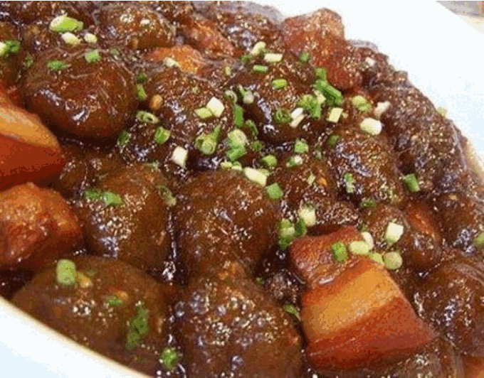 特色: 山粉圓子燒肉:口感粘而不稠、油而不膩,滑爽可口。